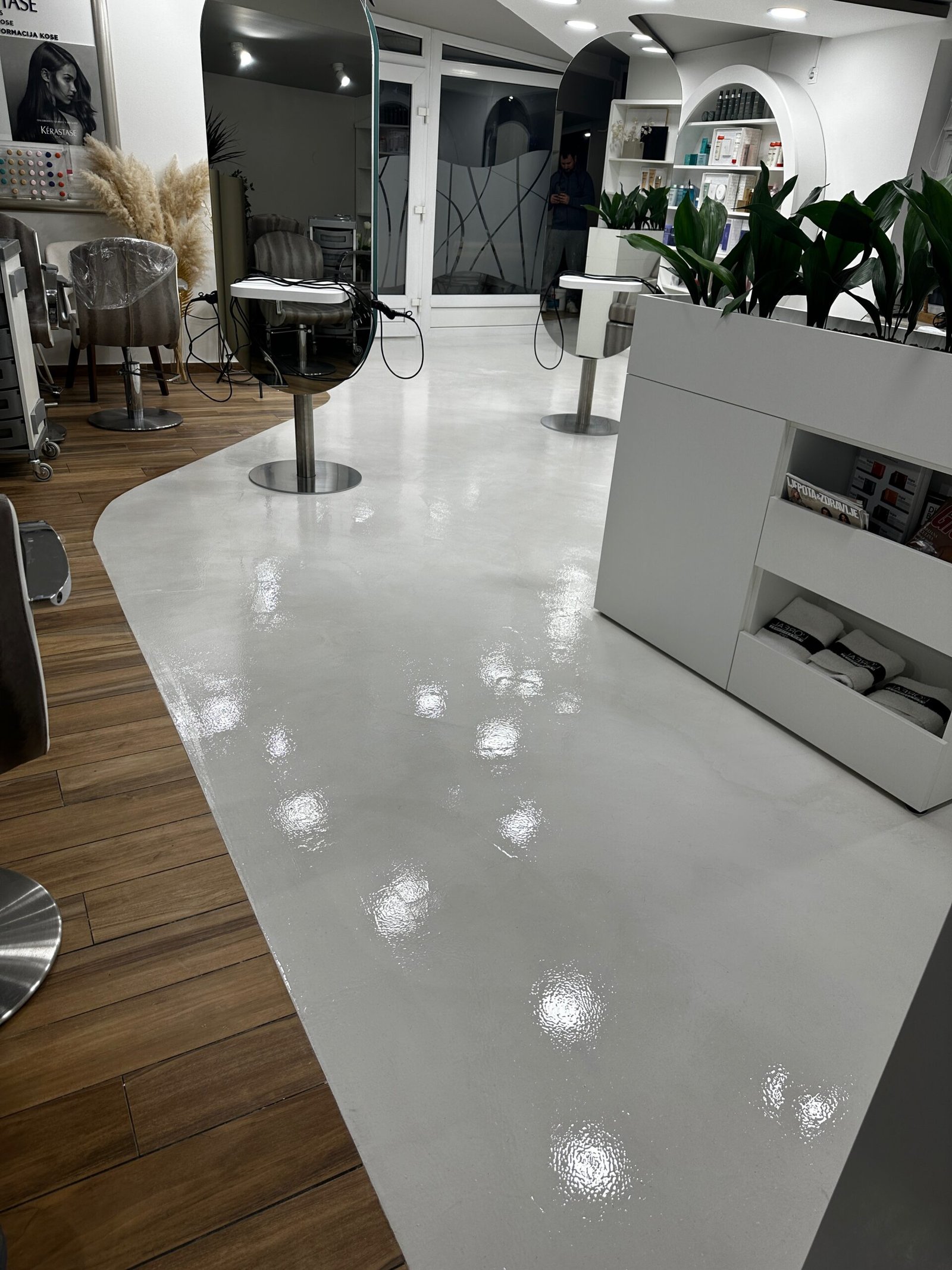 EPOXY EPOXY Opis: Epoxy podovi su besprijekorno glatki i izuzetno otporni na udarce, habanje, vlagu, kemikalije i ogrebotine, te zbog toga traju godinama bez znakova umora. Dolaze u raznim bojama i efektima, od visokog sjaja do 3D izgleda. Galerija: Vizualno impresivan. Čvrst poput kamena. Izuzetno snažan Lak za čistiti Otporan na kemikalije Otporan na udarce Otporan na habanje U potrazi ste za snažnim i atraktivnim podovima? Tu samo da vaš prostor napravimo sjajnim Kontaktirajte nas